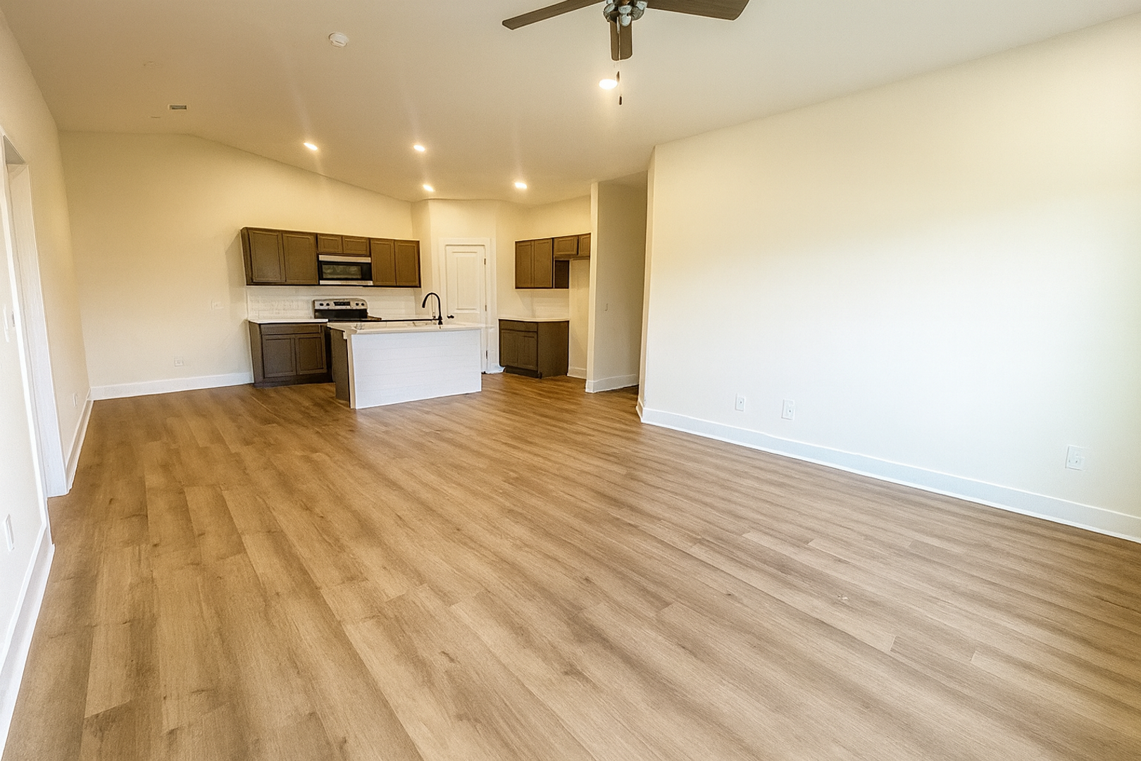 This newly built 3-bedroom, 2-bathroom home offers a bright and open floor plan designed for comfortable living. The spacious living area connects smoothly to the kitchen and dining space, creating an inviting layout for both daily life and entertaining. A small mudroom near the entrance provides convenient storage and coat hooks to keep things tidy.
